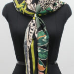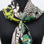- The Drape (Best for 52x52 Squares): Fold your scarf into a triangle or a long band. Secure to the side of your neck using the ring, creating an asymmetrical, elegant look that highlights bold floral and leopard motifs beautifully.