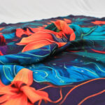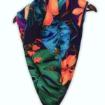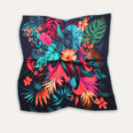 Electric Tropics by Novus is a high-octane celebration of tropical life, crafted in 100% Bemberg Fine Satin for a luminous, liquid-like drape. Sweeping bird-of-paradise blooms, majestic hibiscus, and lush monstera leaves set against a deep ink-black void radiate with an almost luminous electric intensity. Designed for those who embrace maximalist elegance and the raw, untamed beauty of the tropics this is a scarf that demands to be seen.