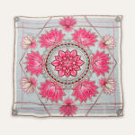 Mandala in Bloom by Novus is an invitation to calm and centred elegance, crafted in 100% Bemberg Fine Satin for a fluid, breathable drape. A mesmerising radial mandala of blooming lotuses symbolising purity and rebirth is rendered with geometric precision and soft, stippled petal textures that feel both grounded and ethereal. Whether worn as a neck scarf or a headwrap, its perfect symmetry ensures a flawlessly beautiful look from every angle.