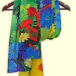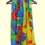 The Meadow Pop Poppy stole in Premium Ultra Muslin Viscose ignites the senses with a vibrant all-over floral field of scarlet poppies, electric cornflowers, and daisies on a luminous lemon-to-green gradient.