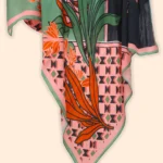 Vintage Floral by Novus is a masterclass in contemporary composition, crafted in 100% Bemberg Muslin for a featherlight, fluid drape. Hand-drawn anemone blossoms break dramatically through a bold, multi-directional geometric backdrop of tribal-inspired diamond patterns the contrast between rigid structure and fluid, curving floral stems creating a visual tension that is simultaneously sophisticated and high-fashion. Designed for the woman who commands attention with effortless, structured elegance.